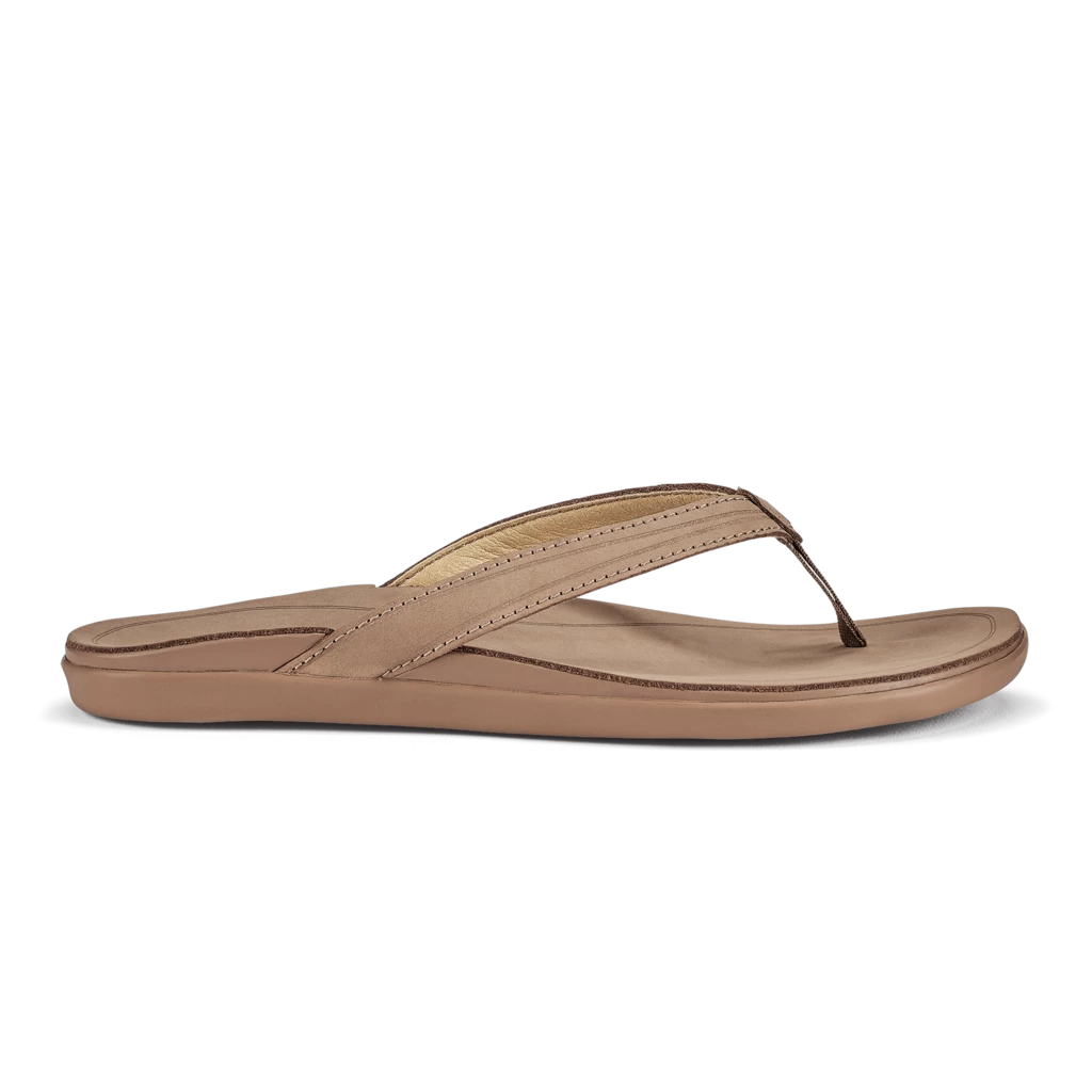 Understated style, soft leather, lasting comfort-the ‘ Aukai will be the most versatile style in your closet. Slip them on and head to the beach or throw them in your bag for the next road trip, this classic sandal is made to travel wherever you do. Elegant full-grain leather upper with a soft, breathable microfiber lining and a nylon toe post create an ultra-comfy fit. Anatomical Pu footbed with a premium full-grain leather cover delivers all-day support and a modern look and feel. Non-marking rubber outsole with ocean current inspired traction pod design for enhanced traction and durability. / Womens Sandals ‘ Aukai in Tan / 7 / Nylon / Olukai