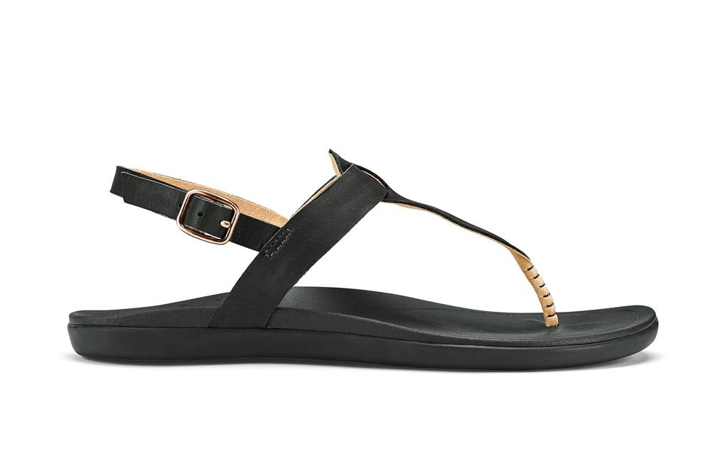 Just as the strong wings of Hawai’i’s seabirds carry them over great distances, ‘ Ekekeu supports all-day anywhere adventure with an adjustable ankle strap for a customized fit. F E A T U R E S Adjustable ankle strap with metal buckle for a customized fit, comfortable hand-sewn leather toe post, and laser-etched footbed design. U P P E R Smooth full-grain leather straps, soft microfiber lining, and adjustable ankle strap with a bright metallic buckle for a customized fit. F O O T B E D Anatomical Pu footbed with micro-texture for traction and a lower profile for a modern clean look and feel. O U T S O L E Non-marking rubber outsole with ocean current-inspired traction pod design for enhanced grip and durability. / Womens Sandals ‘ Ekekeu in Black / 5 / Olukai