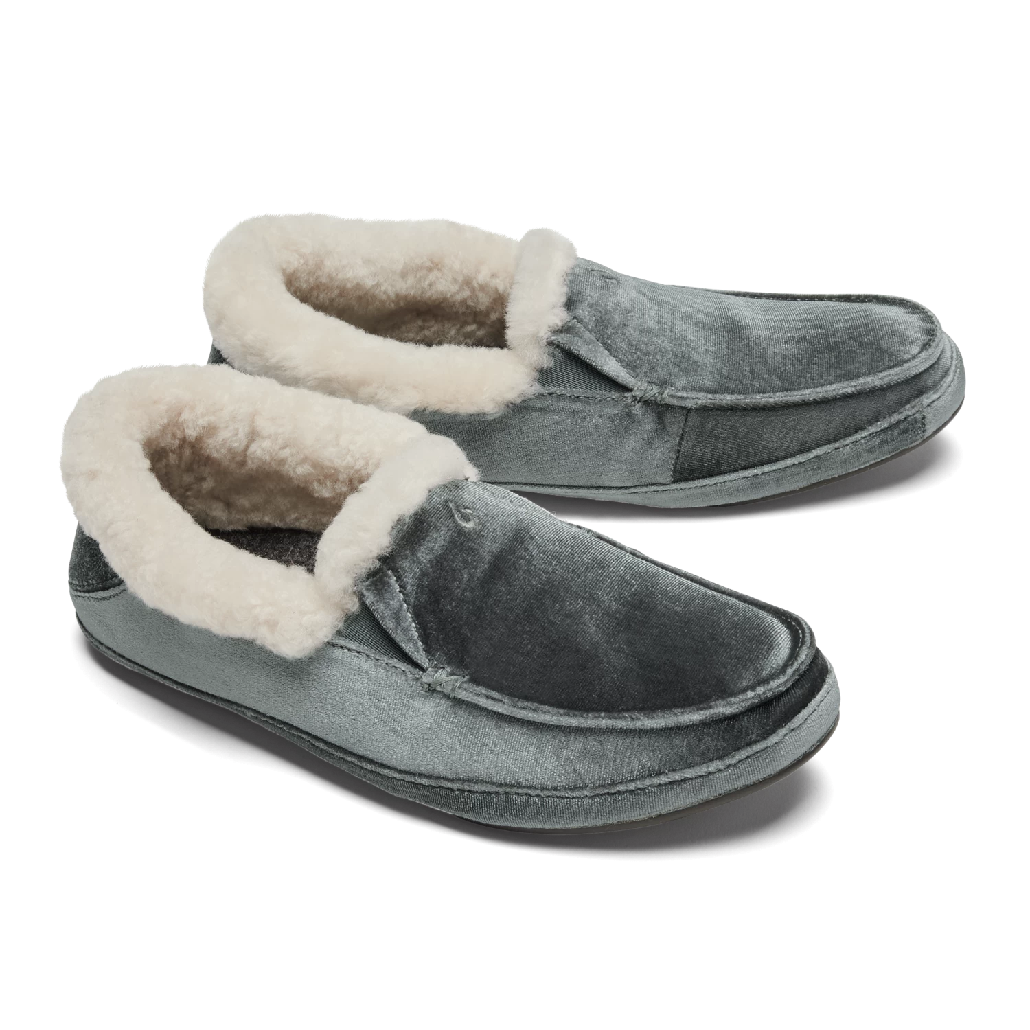 Velvet materials reminiscent of the shimmering ocean surface at sunrise—the Kuʻuna Lānui has a sophisticated style made for soaking it in. Lined with cozy shearling, these slippers are perfect for those quiet moments before hitting the streets or surf.