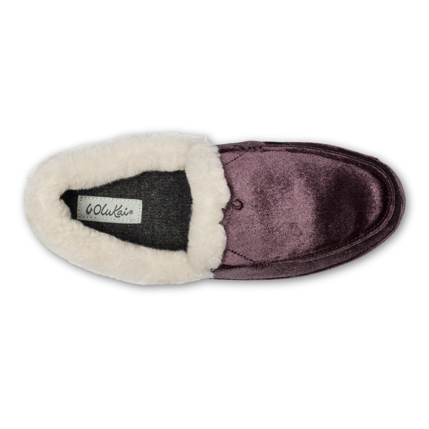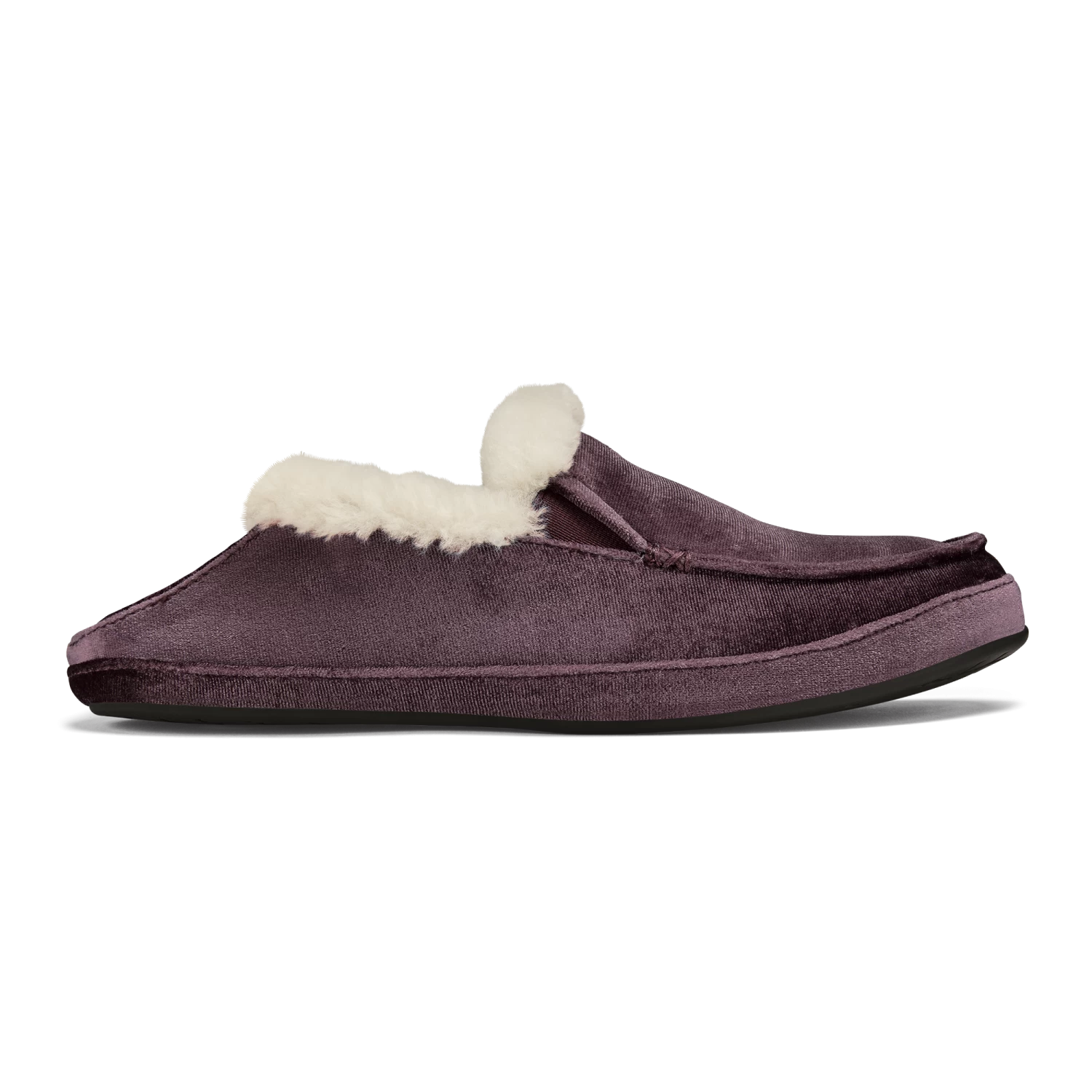 Velvet materials reminiscent of the shimmering ocean surface at sunrise—the Kuʻuna Lānui has a sophisticated style made for soaking it in. Lined with cozy shearling, these slippers are perfect for those quiet moments before hitting the streets or surf.