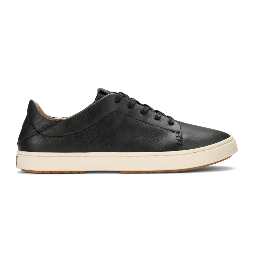 Cruise the coastline or spend the afternoon at the farmer’s market in your new everyday sneaker, the Pehuea Lī ‘ Ili. Classic and cool, it’s made with premium full-grain leather to ensure you can comfortably slide from one adventure to the next. Their patented Drop- In- Heel® design offers both a shoe or slide functionality. Wrapped in premium, full-grain leather with soft leather lining in the heel and tongue for style and comfort. Recycled polyester used in fabric lining and sockliner cover. Embroidered logos and flat, waxed cotton laces. Dual-density anatomical Pu footbed with a chassis and softer top deck deliver extra cushioning. Custom digital print footbed cover inspired by surfing Waipio Valley on Hawai’i island at sunset. Removable and washable. Made with a non-marking rubber outsole and Polynesian inspired artwork design for better traction. Leather logo patch with embossed logo Detail and decorative sidewall stitching add style. / Womens Shoes Pehuea Lī ‘ Ili in Black / 6 / Cotton/ Polyester / Olukai
