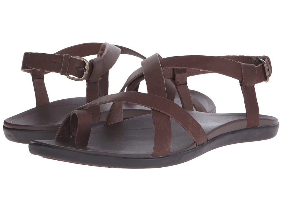Add tread to trend with the stylish and comfortable OluKai Upena sandal! ; Multi-strap leather upper. Anatomically molded micro-textured PU midsole with laser-etched hook logo. Slotted leather toe post with a comfortable bonded construction. Adjustable ankle strap with antiqued metal buckle for a customized fit. Non-marking rubber outsole with textured pods for enhanced traction and durability. Synthetic rubber outsole will not leave marks or scuffs on surfaces of any type. Imported. Measurements: ; Weight: 7 oz ; Product measurements were taken using size 8, width B – Medium. Please note that measurements may vary by size.